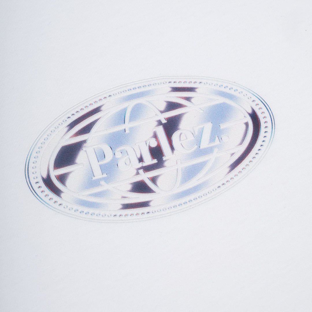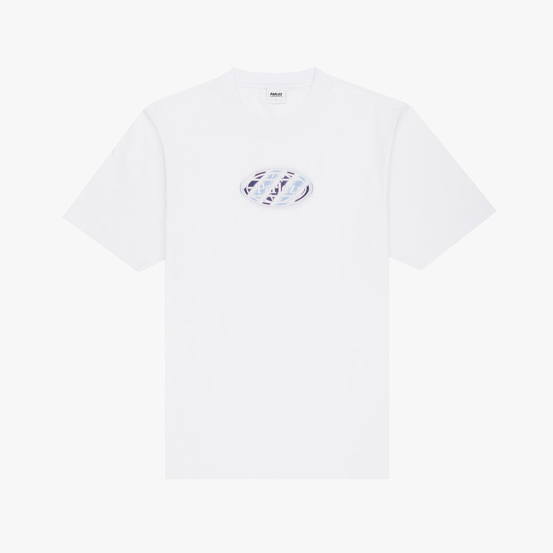 The Chroma T-Shirt in White. A short sleeve tee made from premium GOTS Certified, 100% organic cotton with a classic ribbed crewneck. Detailed with a printed chrome design on the chest.