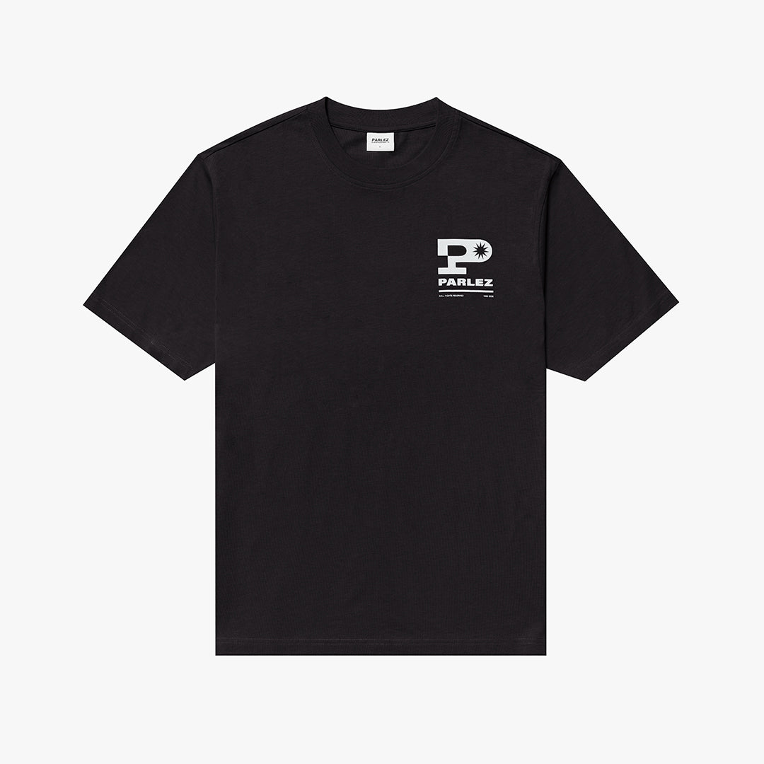 The Complex T-Shirt in Black. A short sleeve tee crafted from premium GOTS Certified, 100% organic cotton with a classic ribbed crewneck. Detailed with a small, printed logo on the chest and a large design on the back.