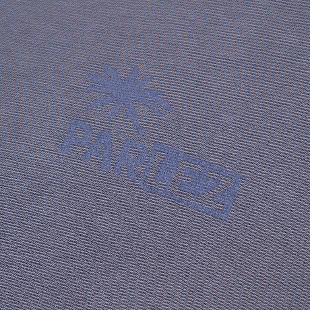 The Destin T-Shirt in Purple Haze. A short sleeve tee crafted from premium GOTS Certified, 100% organic cotton with a classic ribbed crewneck. Detailed with printed branding on the chest and a large design on the back.