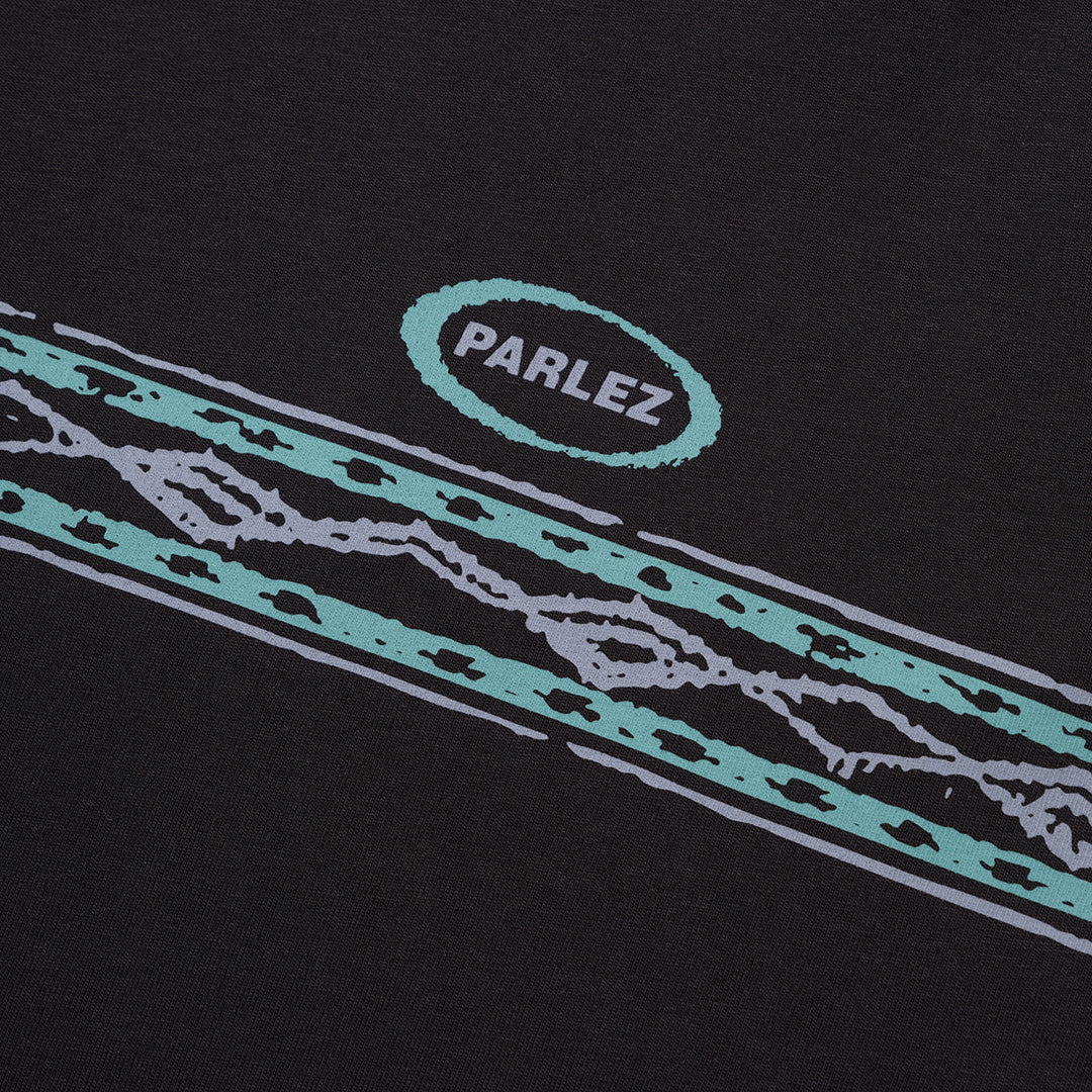 The Diego T-Shirt in Black. A short sleeve tee crafted from premium GOTS Certified, 100% organic cotton with a classic ribbed crewneck. Detailed with a printed band across the chest.