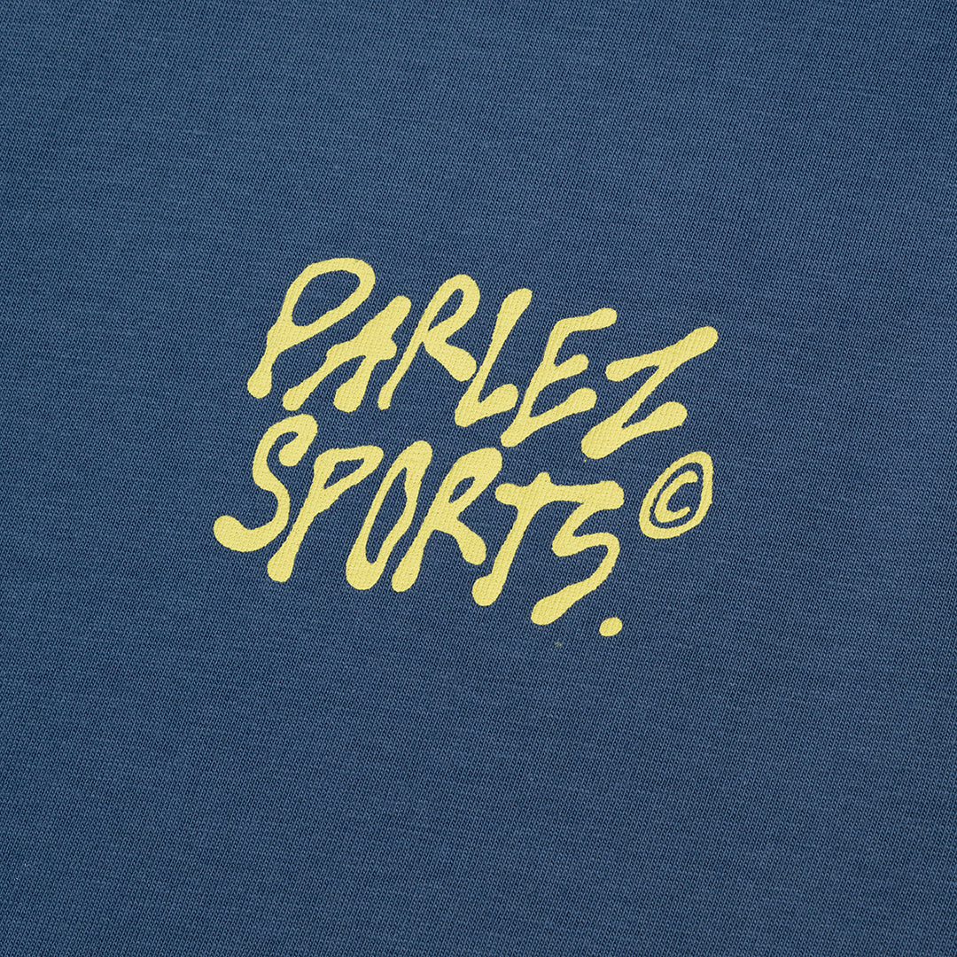 The Flow T-Shirt in Lagoon. A short sleeve tee crafted from premium GOTS Certified, 100% organic cotton with a classic ribbed crewneck. Detailed with printed branding on the chest and a large design on the back.