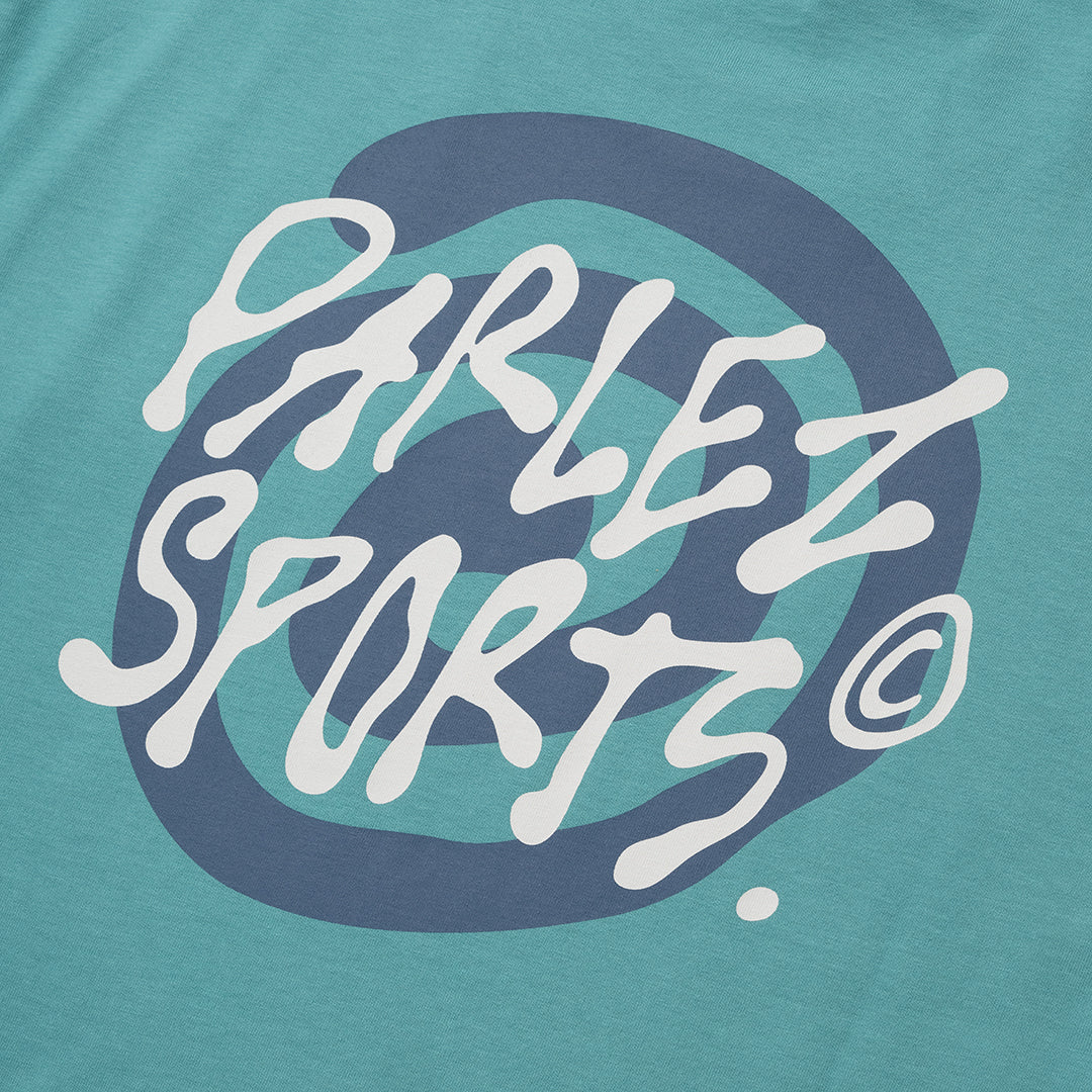 The Flow T-Shirt in Leaf. A short sleeve tee crafted from premium GOTS Certified, 100% organic cotton with a classic ribbed crewneck. Detailed with printed branding on the chest and a large design on the back.
