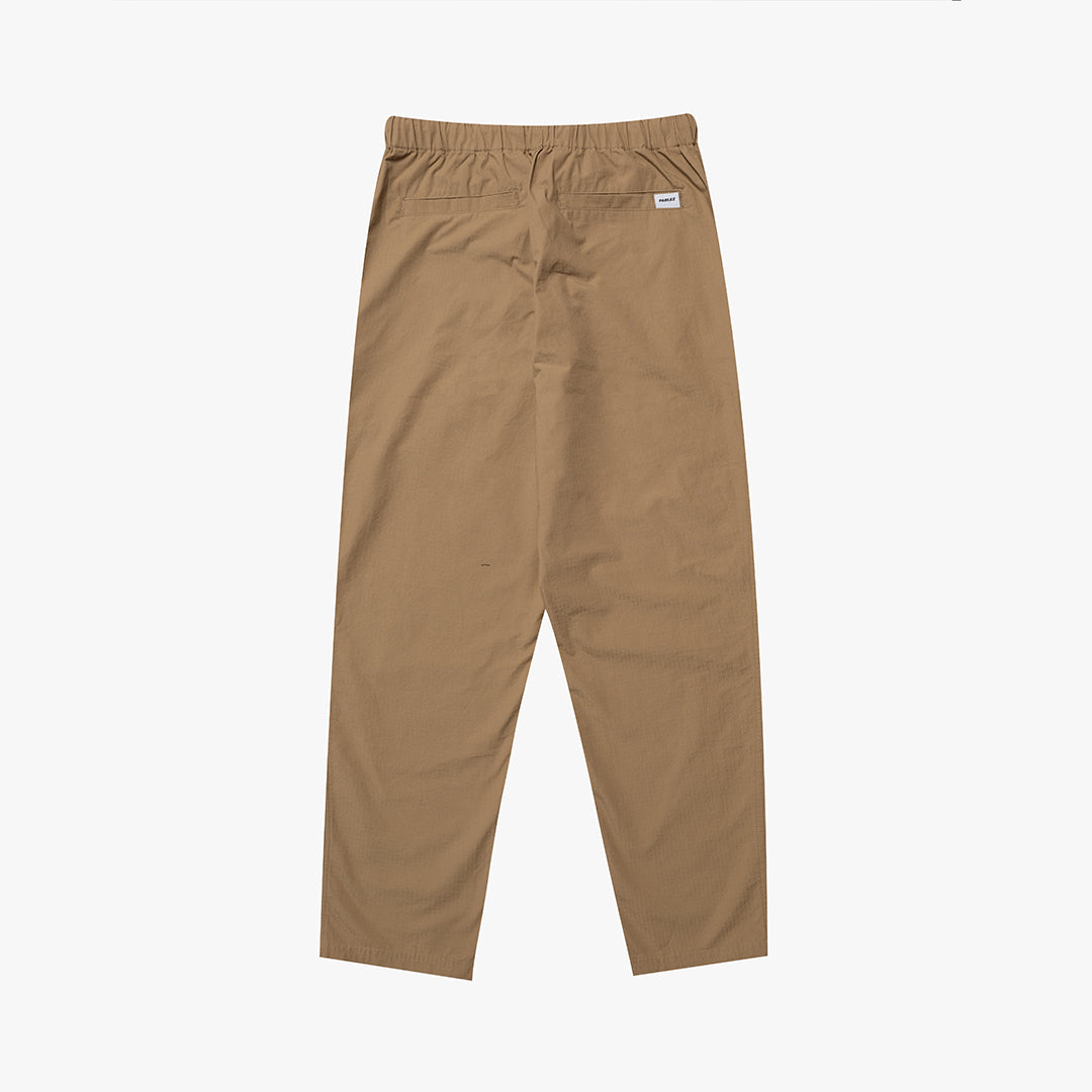 The Seabright Trousers in Hops. Relaxed-fit, tapered trousers crafted from durable 100% organic cotton ripstop. Designed with an elasticated drawstring waist, two side-entry pockets, and two back welt pockets. Finished with a branded woven patch on the back pocket.