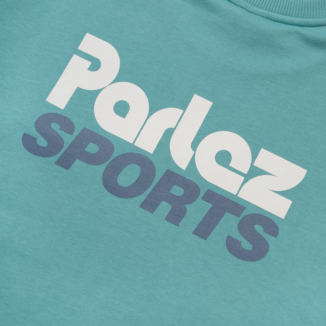 The Status Sweat in Leaf. A loopback sweatshirt crafted from a premium organic cotton and recycled polyester blend. Designed with a classic crew neck and ribbed trims. Finished with a small printed logo on the chest and a large design on the back.